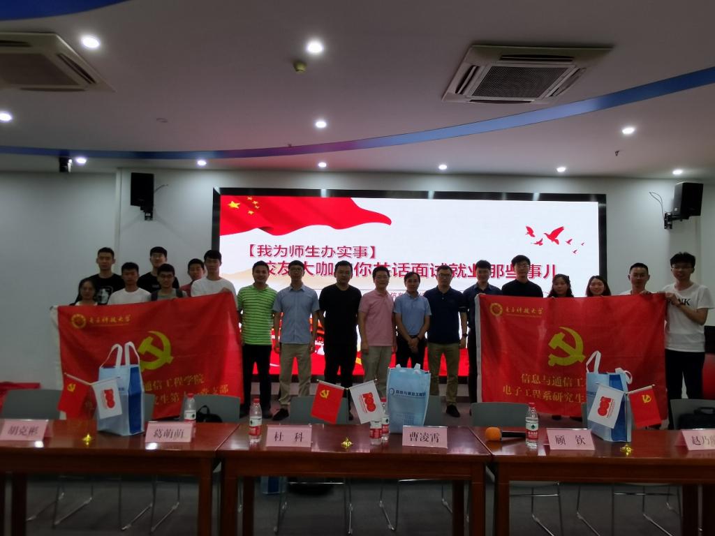 本次活动邀请到了上海无线电设备研究所总体室主任杜科、华为技术有限公司成都研究所蒋志涛主任工程师和胡克彬博士、汇顶科技有限公司顾钦博士、中国电子科技集团第二十九研究所曹凌霄和即将入职中国电子科技集团第十研究所的葛萌萌博士、即将入职百度在线网络技术有限公司的赵乃璇与同学们共同交流。座谈会上,各位来宾首先根据各自在学习工作中的体会,在就业方向选择、专业技能准备、自身素质提升、职业规划以及面试经验等方面做了主题发言,大家均强调了清晰的就业目标的重要性,应注重选择有积累和可持续发展的就业方向,在达成目标前注重逻辑思维能力的提高、基础知识点的掌握和创新能力的体现,同时要有攻坚克难的思想准备,要勇于承担责任、敢于吃苦、敢于他人先,将正确的价值追求、理想信念和家国情怀贯穿到学习和工作中。