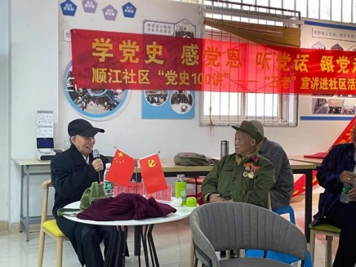 为丰富支部党史学习形式,促进校地共建活动开展,让支部成员走出教室,走出校园,支部联系校外顺江社区党委,邀请社区作为老党员同志为大家分享党史。耄耋之年的老同志用亲身经历讲述党史,让支部成员收获理论学习中学不到的党史情怀。不仅丰富了组织活动形式,更迎合了党中央学党史的主旋律。