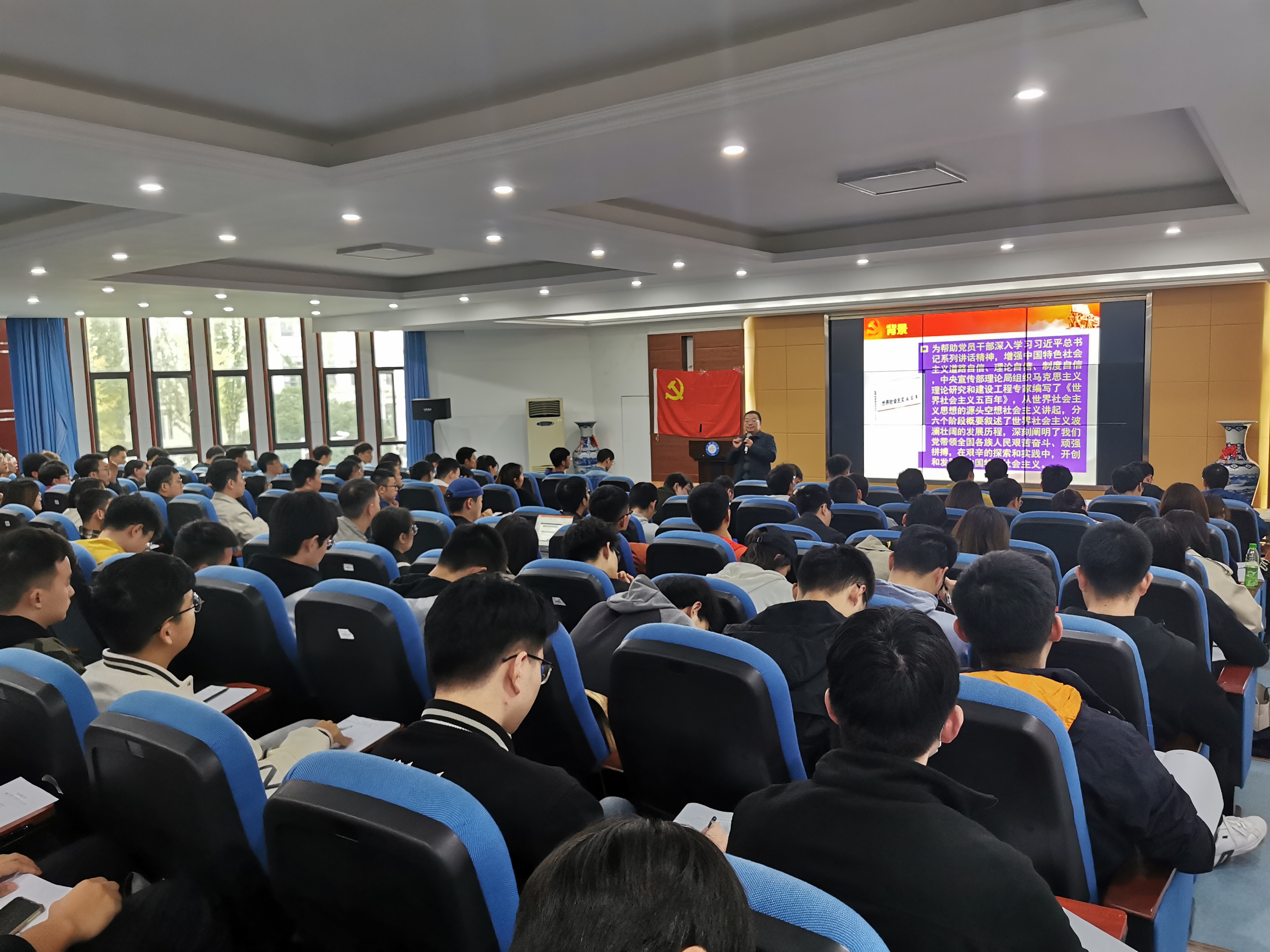 课程的最后,李玉柏强调“社会主义还在不断发展”,并希望同学们在学习中思考,在学习中实践,在学习中提升,继续坚定不移地坚持社会主义道路,为社会主义发展“添砖加瓦”。