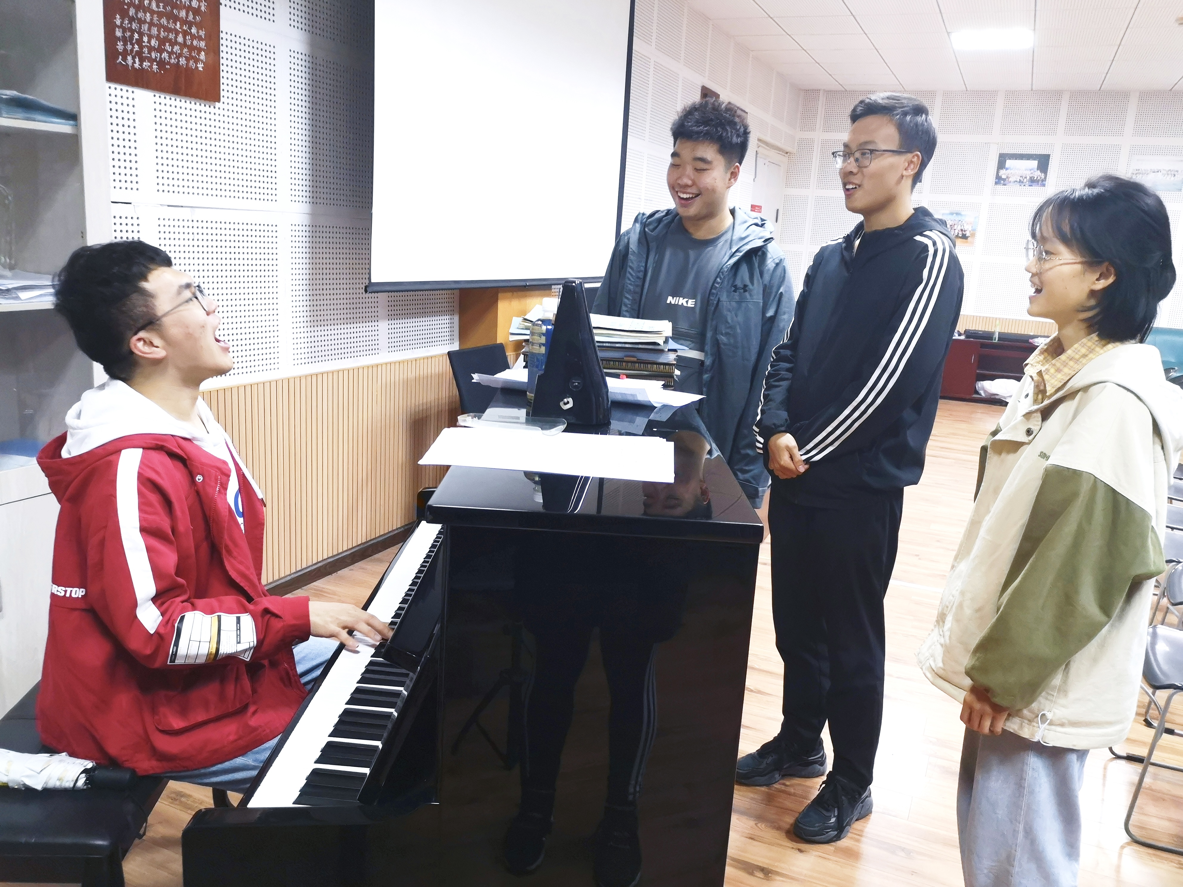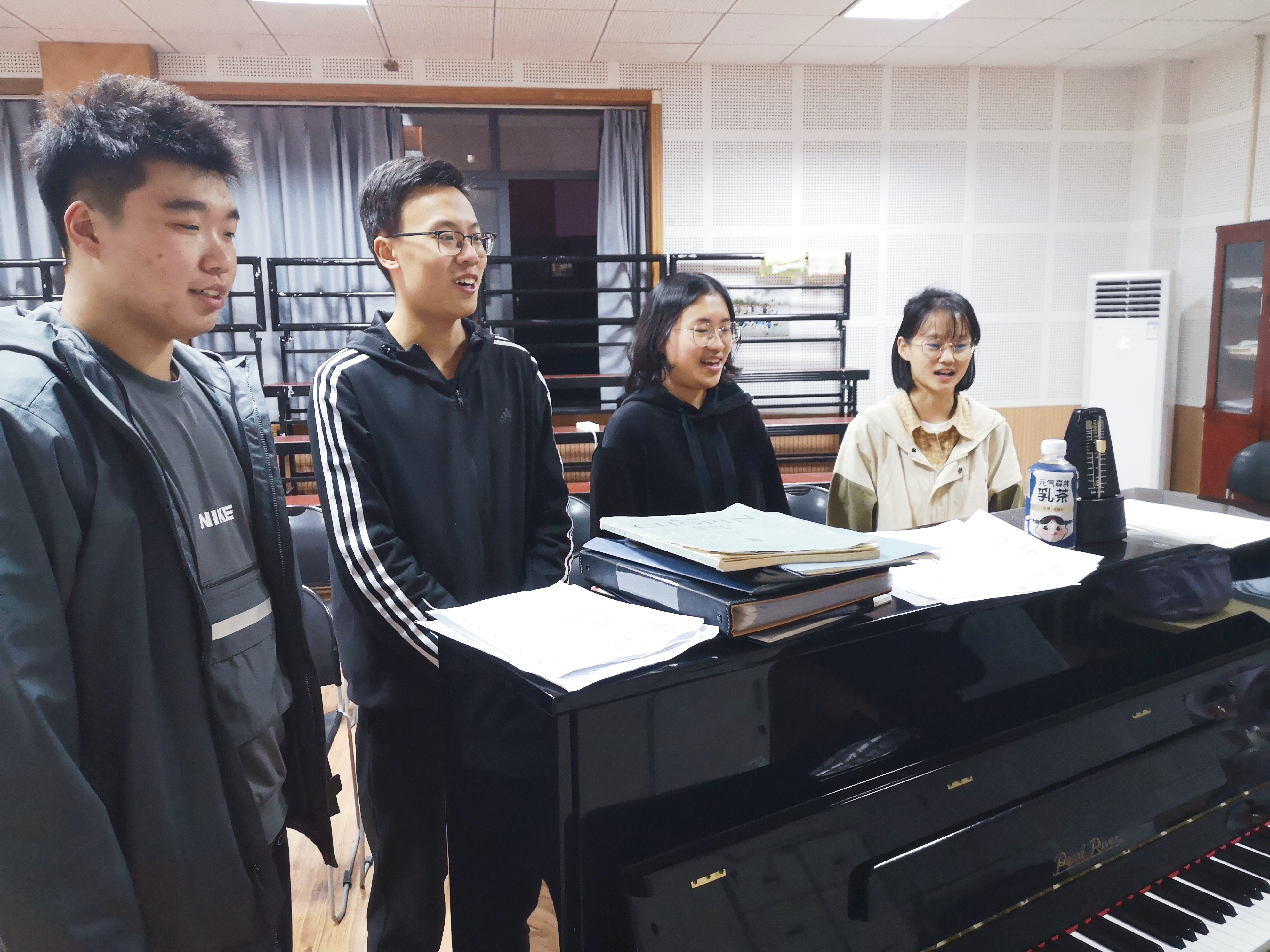 教唱活动之前,剧社成员自行组织排练,同时温习《国际歌》的思想内涵,确保后期准确教唱,并将其教育意义传达给培训班学员。