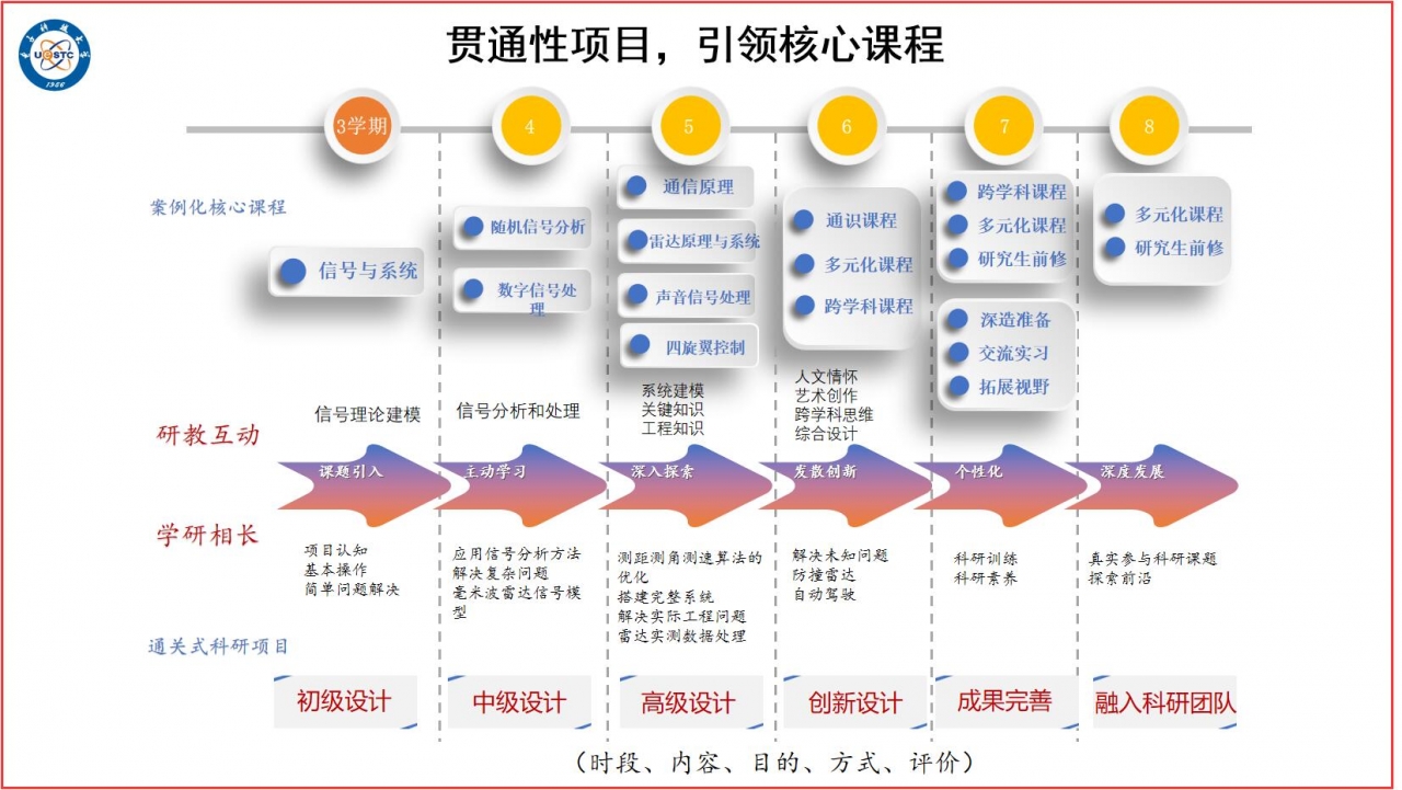 “核心课程”主要包括“课题引入”阶段的“信号与系统”课程,“主动学习”阶段的“随机信号分析”和“数字信号处理”课程,“深入探索”阶段的“通信原理”、“雷达原理与系统”、“声音信号处理”、“四旋翼无人机控制理论与设计”等课程。