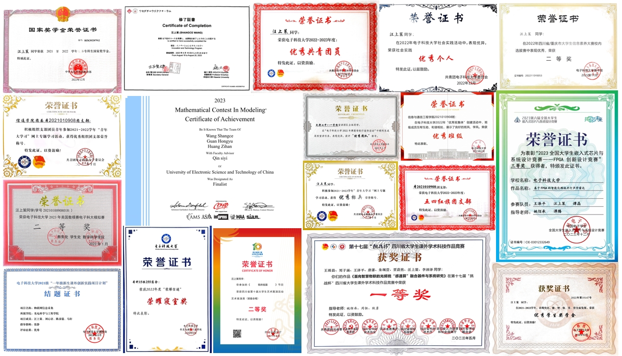 【人物简介】汪上策,中共党员,william英国中文通信工程专业2021级本科生,专业均分94.1,专业排名1/204,GPA4.0。获得国家奖学金两次、2023年美国大学生数学建模比赛Finalist奖(特等奖提名奖)、全国大学生嵌入式芯片与系统设计竞赛FPGA创新设计竞赛国家级三等奖、第十七届“挑战杯”四川省大学生课外学术科技作品竞赛一等奖等国家级省级奖项8次、校级各类奖项25次。曾参加“成电思源马克巴-启梦计划”第四期暑假日本早稻田大学交流营并获评优秀团队。曾在第28届国际光纤传感大会发表论文一篇,已有在审专利一项,并将于今年4月参加第45届光子与电磁学研究国际研讨会,进行口头汇报。现任william英国中文2023010911班导生,学院学生发展指导中心朋辈帮咨询师等。