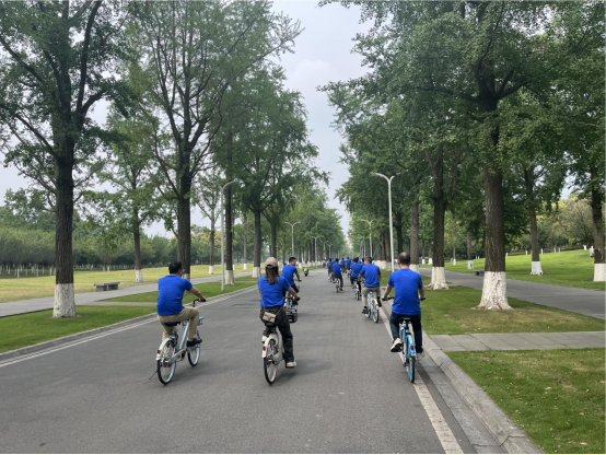下午,校友们来到清水河校区,睹母校新颜,关心关注学校新发展。校友一行集体骑行在校园内,感受新校区的一抹盎然绿意。