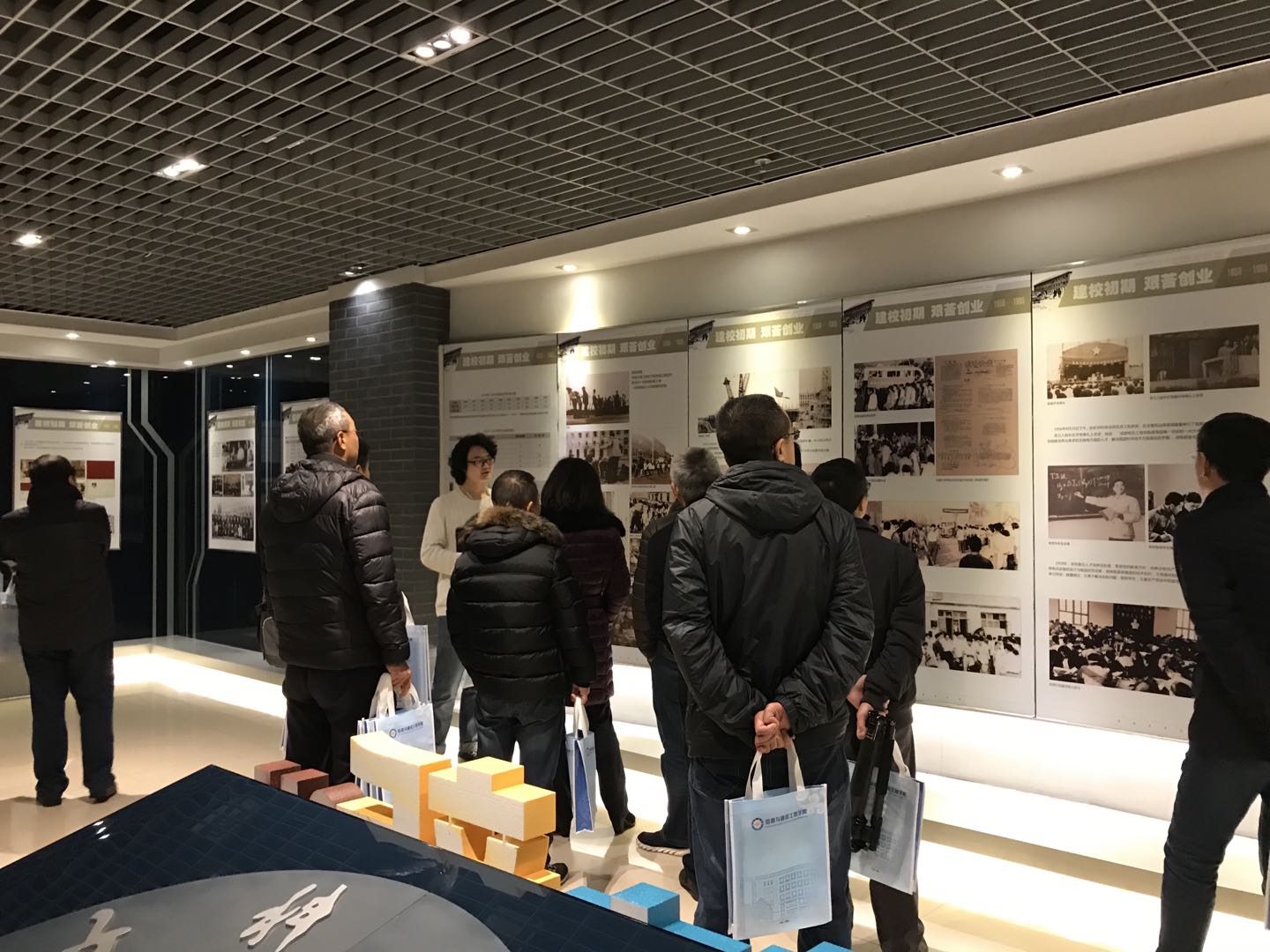 29日上午,校友一行来到清水河校区,也是班级第一次来到清水河校区,共睹母校新貌,以主楼广场为起点进行了校内参观。踏足校史馆,看到陈列的展画与物件,熟悉的场景、熟悉的教材、熟悉的校系领导班子和任课老师,讨论声不断,记忆的片断清晰重现。